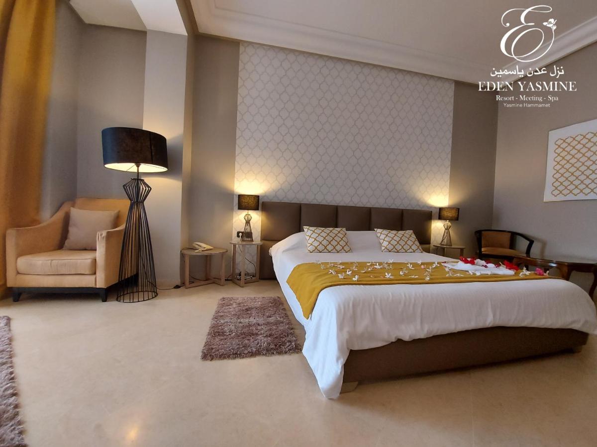 Toutes les chambres de l'Eden Yasmine Resort, Meeting & Spa sont décorées dans un style tunisien moderne. Chacune est dotée d'une salle de bains privative, d'un coffre-fort, d'une télévision à écran LCD et d'un balcon ou d'une terrasse. Les suites possèdent par ailleurs un coin salon.